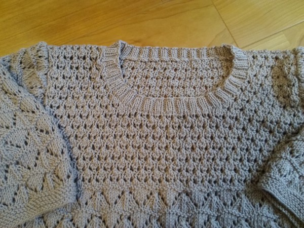 | 半袖のプルオーバー 元のパターン(KnitAnge2020summerの04.サマートップス)とは丈を変えて、前後差を少しつけました。仕上げ前に一週間以上放置してしまい、ようやく完成です… マドンナは細い糸が撚り合わさっているので、始めは糸割れを警戒しましたが、意外と大丈夫でした。柔らかくてとろんとした編地になるので、肌触りも気持ちよく着られそうです。 |