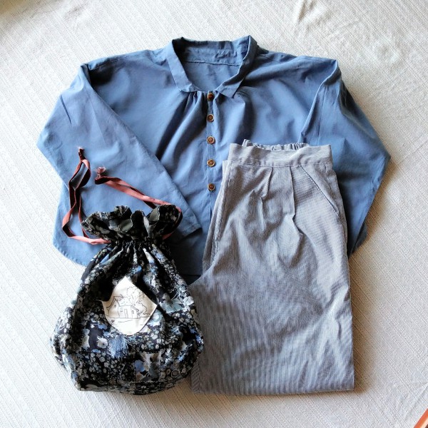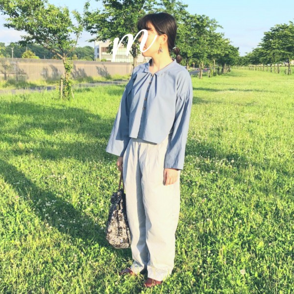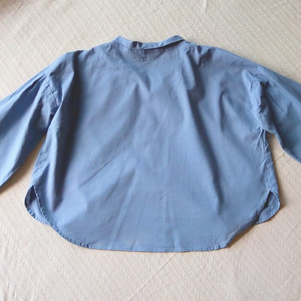 お気に入りパターンのショート丈シャツシリーズ。身頃の丈感が長すぎず、短すぎず、ちょうど良くできて満足。裾は丸くカット。