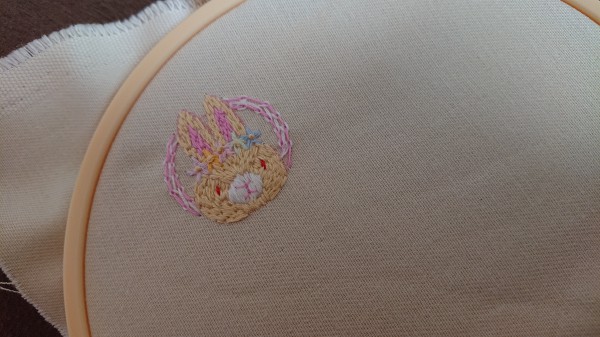 娘の名前と、好きなウサギ。刺し方は判らないことばかりなので、まだまだ勉強&練習中です。