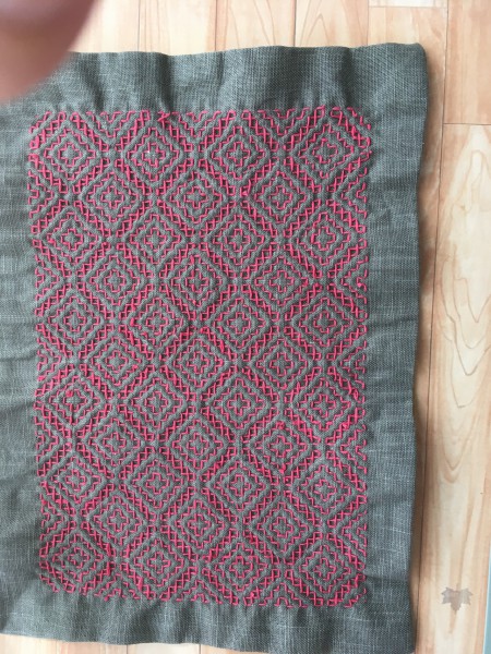 一目刺しは初めてだったので目の長さが違ってしまったところもありますが、満足の出来です