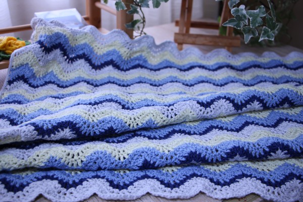 | さらさらのコットン糸で、サマーブランケットを編みました。 4色の色の組み合わせに一目ぼれしたので、 あえて色は変えずに、そのまま編みました。 シェブロン柄がお気に入りです~(^O^) |