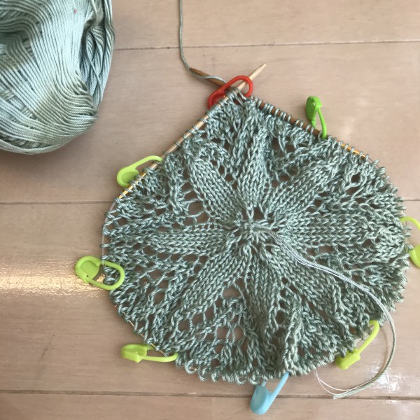 コメントありがとうございます。 棒針で中心から編んでいきます。 かぎ針で編むレースとはまた違う風合いで最近ハマっています。