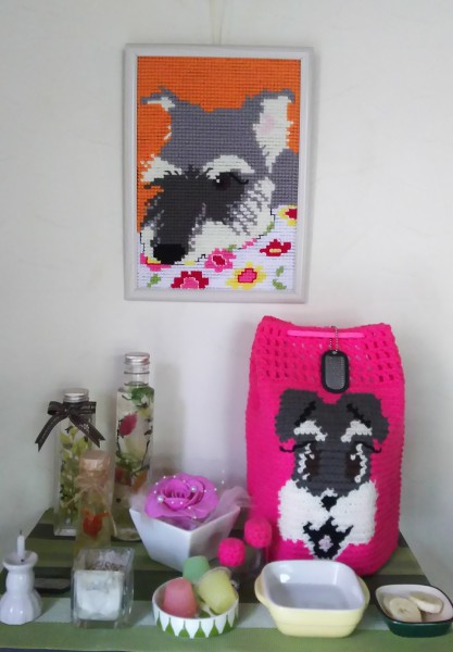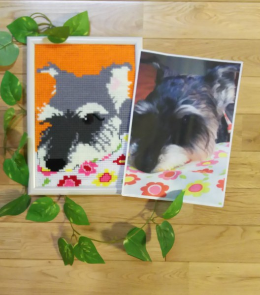 A4サイズにプリントアウトした愛犬の画像をもとにクロスステッチ!!