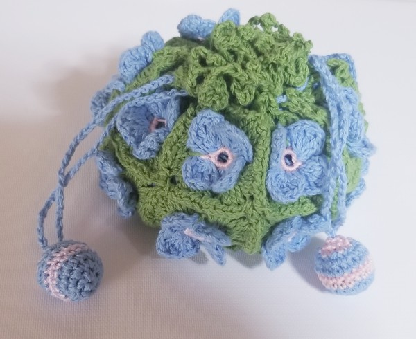 そのまま紫陽花の花みたいですね! 刺繍糸も使うのですねー。本体はコットンの糸なのですか?