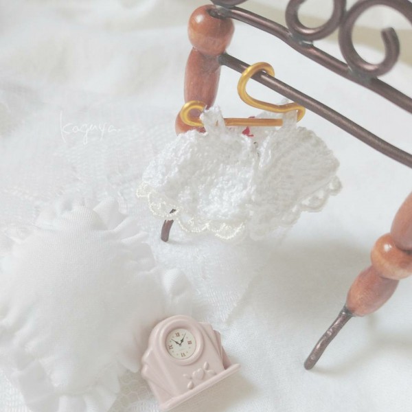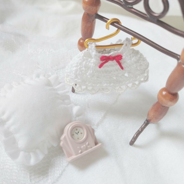 レース糸と 裾のスカラップレースの色を揃えて ふわふわしたネグリジェにしました