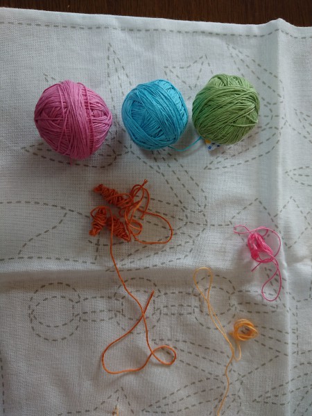黄色系刺し終わり。 次はピンク。 外枠は何色にしようか悩み中。