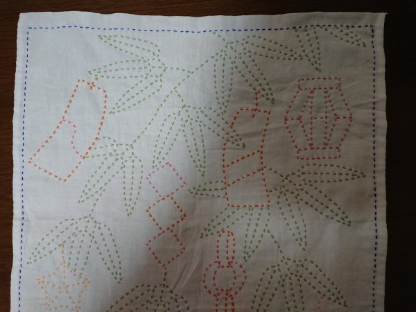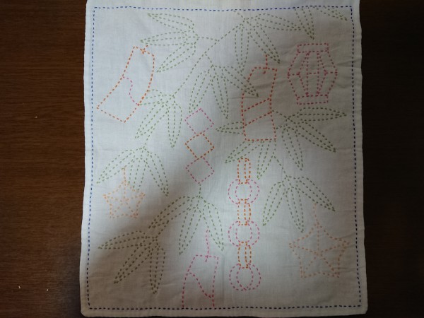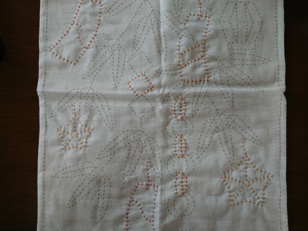 ピンク糸おわり。 次はみどりの笹の葉と外枠。