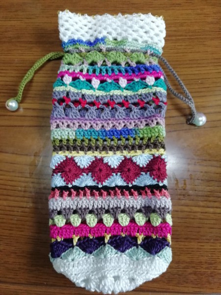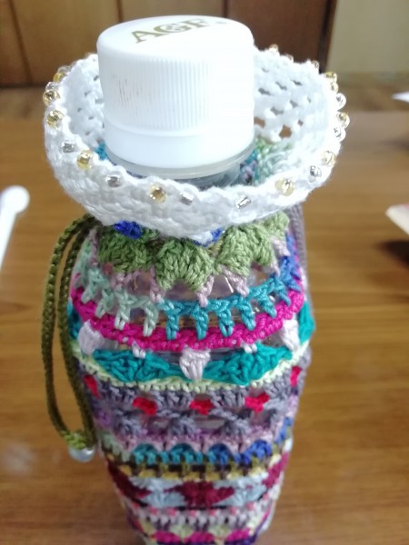 flyingtigerさんのスパイシーブランケットの編み図が編みたかったので ボトルホルダー編みました