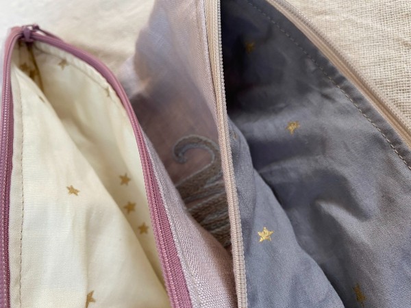 出産祝いでお名前刺繍のポーチを作りました。A5サイズで兄弟お揃い感のあるもの。マスクやおやつを入れるんだそうです。