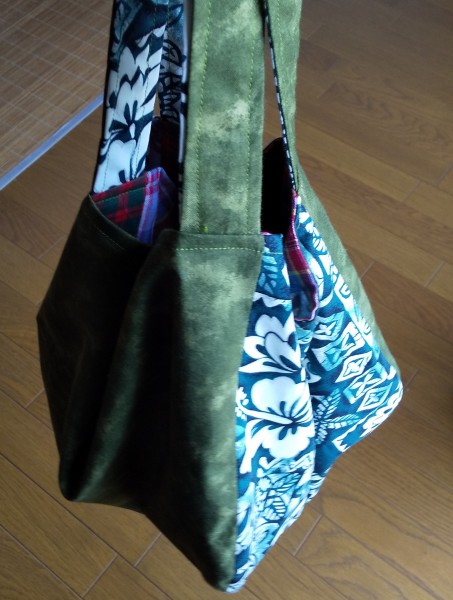 ボックス型リバーシブルトートバッグです。YouTubeを参考にしました。