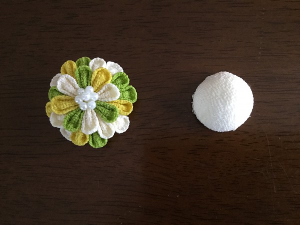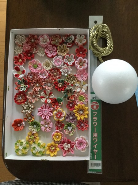 スチロールボールには、下地に100均の貼れるちりめんを貼りました