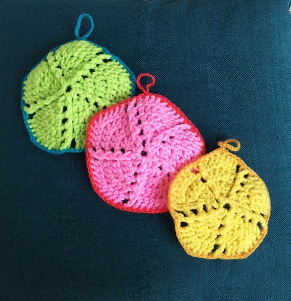 キッチンが楽しくなるエコたわしを作ってみました。薄手にしたのですぐ乾いて使いやすいものになりました。