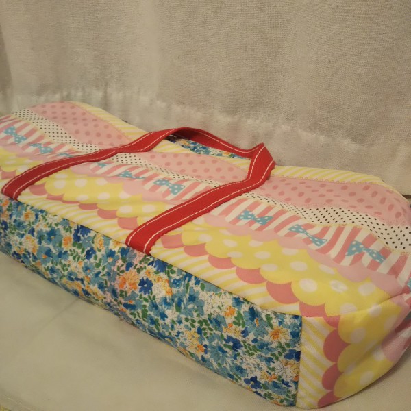 | 作りかけのスカートに取り掛かろうと思っていましたが、ピアニカケースが必要だとわかり無料型紙工房ことろさんのボストンバッグの型紙で急遽作成です。 縫い方はことろさんの作り方を参考にしながら、自分なりに作ります。 防水生地が薄目なので、持ち手の強度をつけるために、表と裏地の中でも持ち手を繋げ補強しました。(4枚目の写真の矢印のところ) 表と裏地を裏地のところ(5枚目の写真の矢印をしてあるところ)で、ぐるりとまつり縫いました。 |