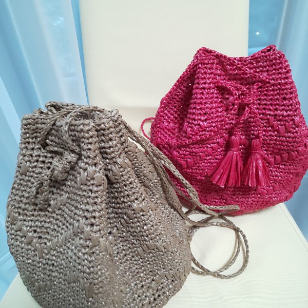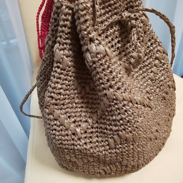毛糸と違いナイロン糸は編みづらいのですが、模様ができていくのが、嬉しくて、色違いも編んじゃいました。