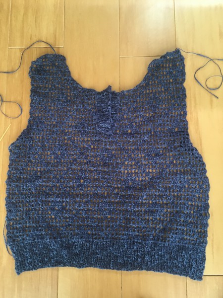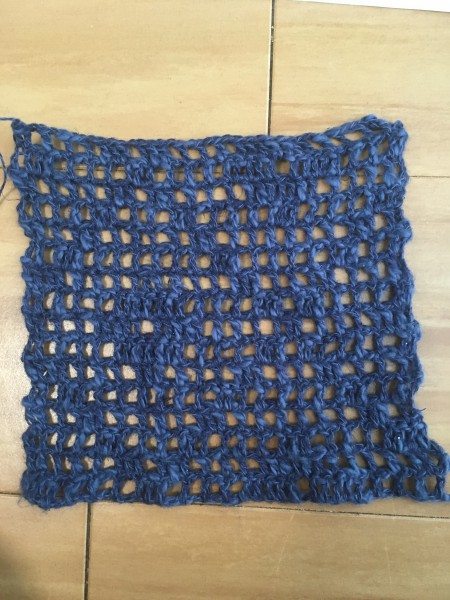 目の詰まった感じにしたくて、糸の指定号数より細い針で編みました