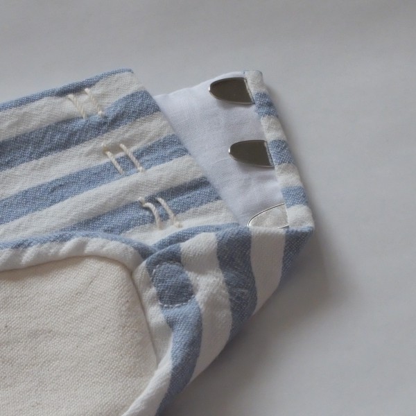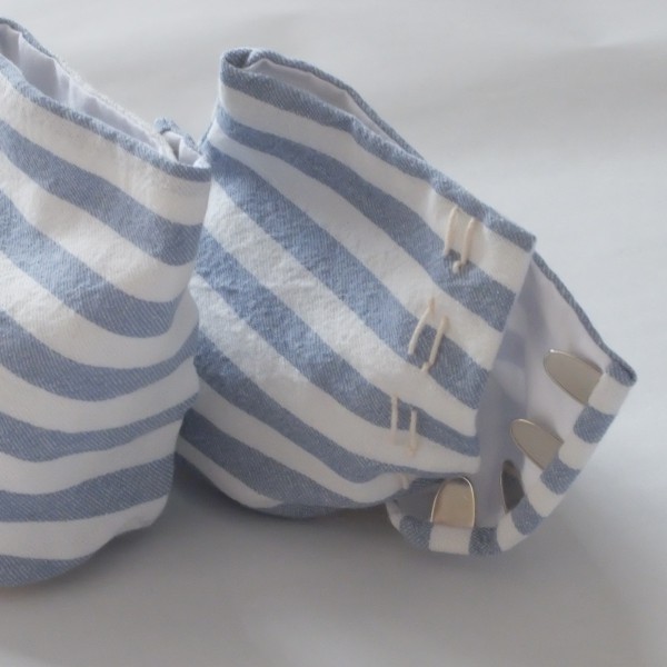 | 夏らしく、水色のストライプの生地を使った足袋。 4枚こはぜ、底布1枚仕立てです。 足の甲の柄合わせは特にしなかったのでズレていますが、せめて左右で揃えた方が可愛いんだろうなと思います。 木綿生地なので汗は吸ってくれると思いますが、底布が帆布なので夏には暑いかも。 綿麻の生地でも作ってみようと思います。 |