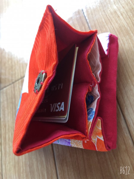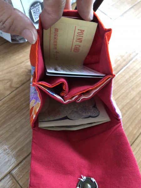 娘の七五三の時の着物をほどいて、お財布を作りました。
