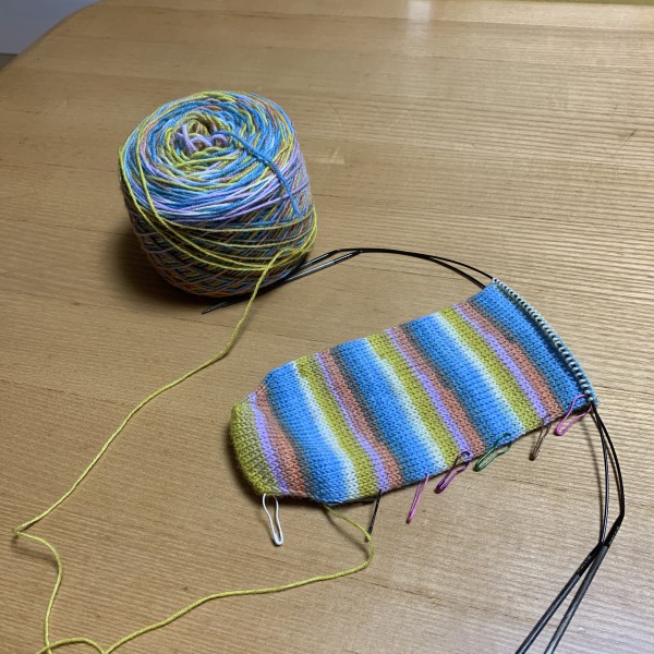 今回は初めて、伸縮性のある伏せ止めに挑戦しました。