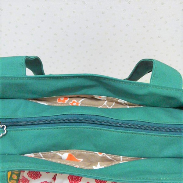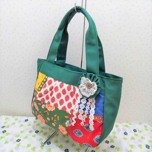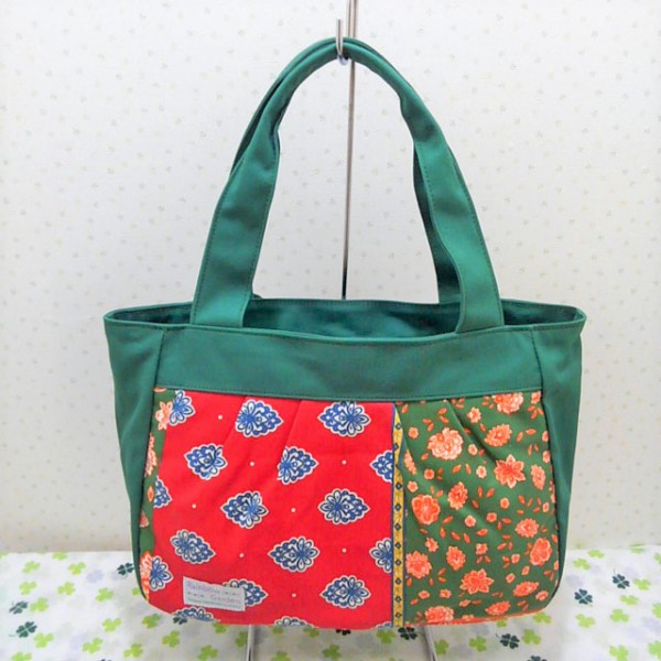 | フランス製のコットンと日本製10号帆布を使用した、日仏コラボのバッグ。 パッチワーク調のプリントがカラフルで可愛らしい、フランスらしいオシャレな素材。 メイン収納スペースの前後にポケットをあしらっているので、胴体にポケットが無くても収納に困りません。 むしろ、隠しポケットがオシャレです。 サイズは、大きすぎず小さすぎず丁度良く、しかも超軽量。 取り外し可能なコサージュは、ピンとクリップのW仕様。 |
