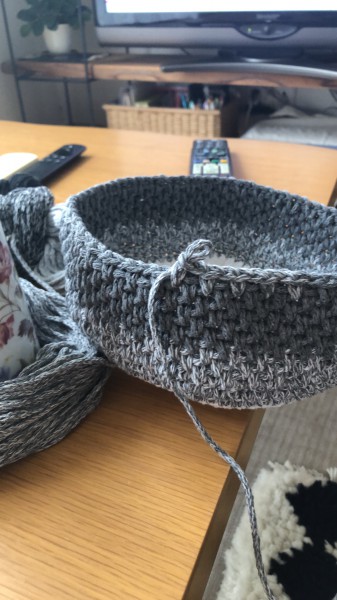 変わった細編みで編み地がしっかりし、バッグには最適な編み方でした。