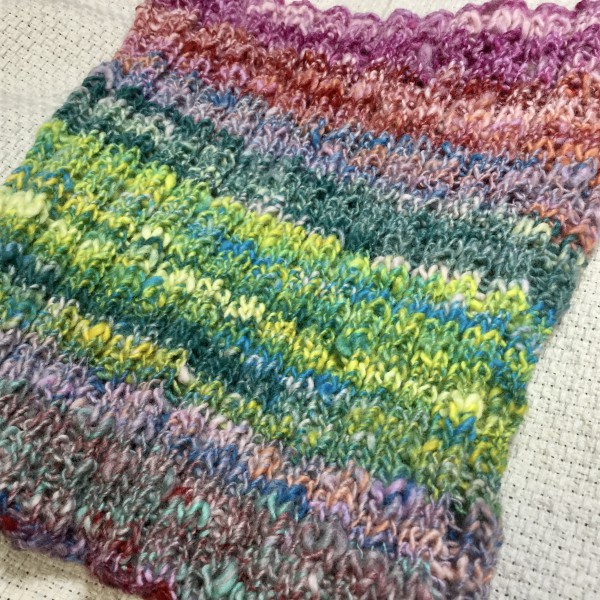 自由にブレンドした手紡ぎなので、編み上がりが想像つかないのが楽しいです!