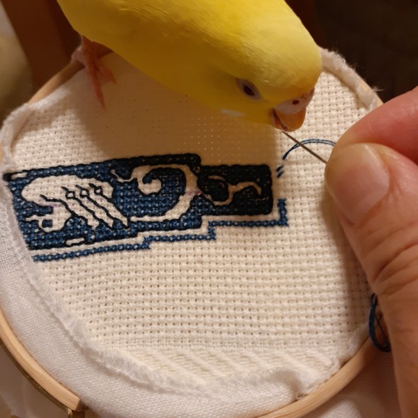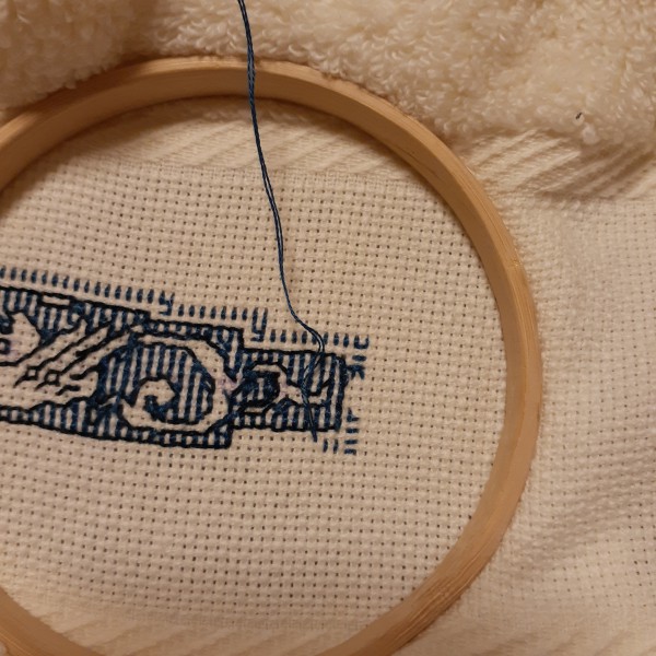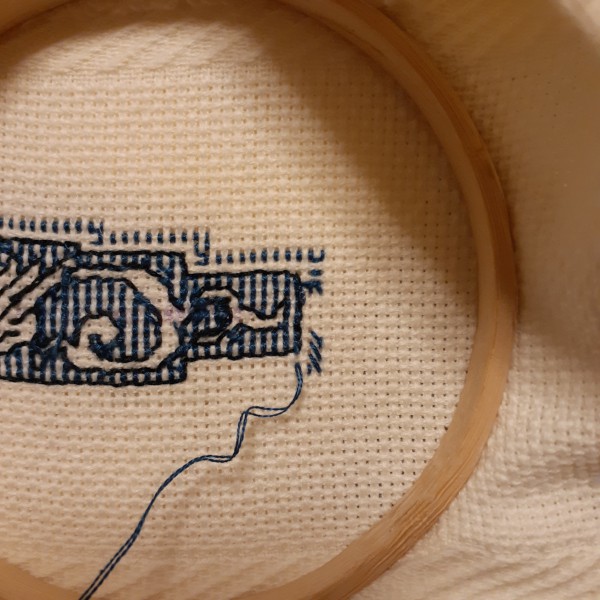 アッシジ刺繍は裏も綺麗に刺さないといけないので、迷路にいるような感覚で次に進む所に迷いながら刺してます