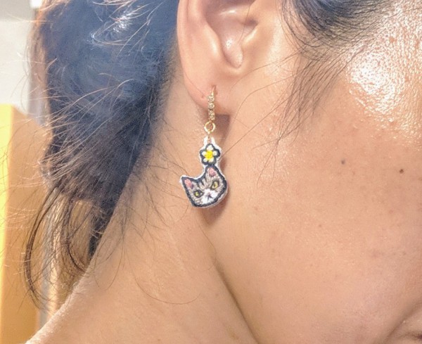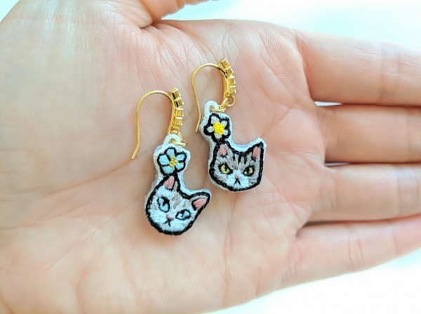 1本取りで猫を刺繍しました。 どうやってパーツに付けようか悩み中です。