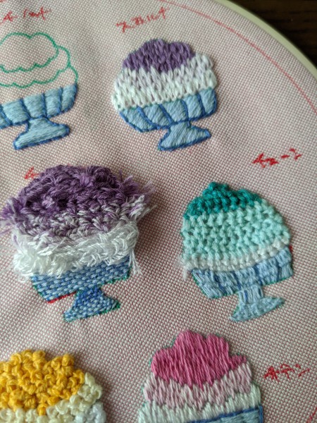 意外とチェーンステッチが、氷のシャリシャリ感を表現できている?スミルナステッチのふわふわはちょっといい店のかき氷。