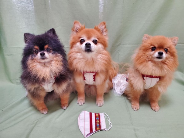 3頭並んでモデルしてくれるので、だからお揃いで作ってあげたくて頑張りました(^_^)