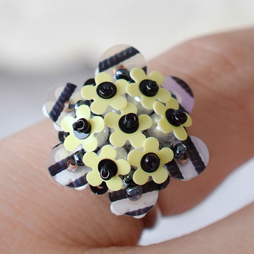 お花のスパンコールを使った刺繍アクセサリーです。