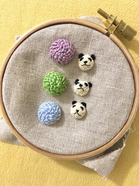 パンダ3匹。ちょっとしたことで、顔が全然違います(^^)。ステッチの目は、細かすぎても粗すぎても可愛くなく、程よいところに落ち着くのがまだまだですね。