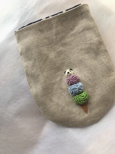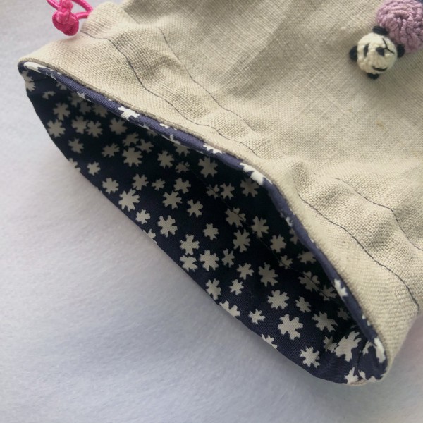 いよいよ巾着に仕立てが、私に出来るのか?と思ったら、nanaさんのやり方だと、ミシンで縫うのが最低限で済んで、あれ?という感じで裏の付いた巾着に!!嬉しい!