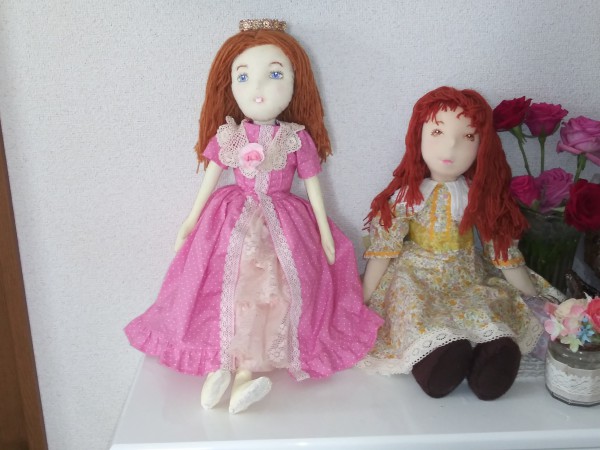 人形のドレスに苦心、 やはり豪華でないと似合わないような?