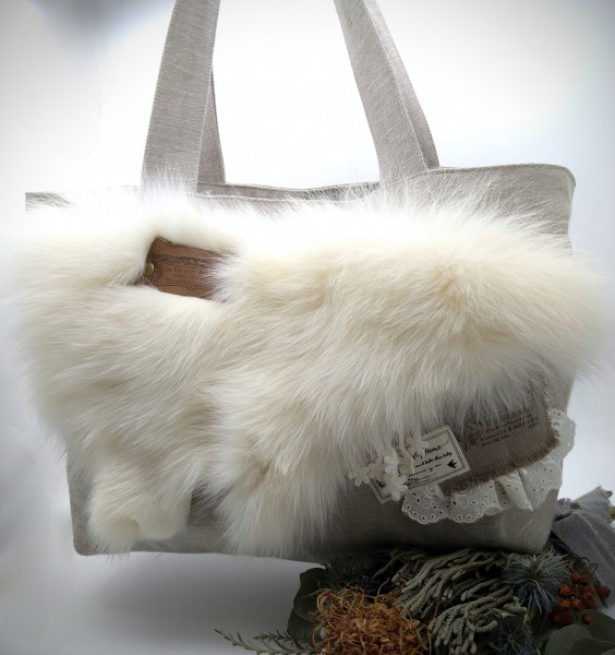 | ファーを使ったバックを作りまました ちょっとハードめな生地にファーと、レースや革という一見ミスマッチな素材ですが、完成してみるとちょうどいい塩梅の甘辛バッグが完成しました。 mammyjewelboxさんのパターンを使用しました。 |
