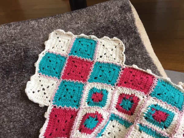姪っ子のお子ちゃまにおくるみ編んだ。