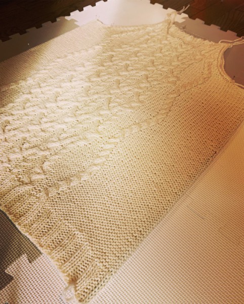 複雑に絡み合うアラン模様で楽しく編めました\(°∀°)/