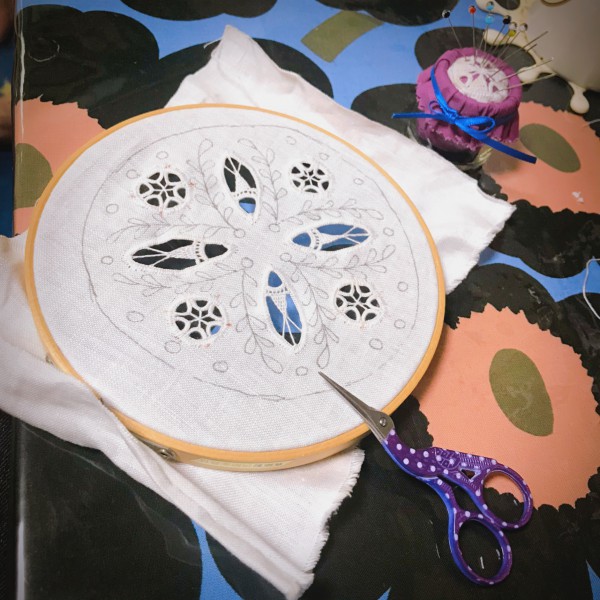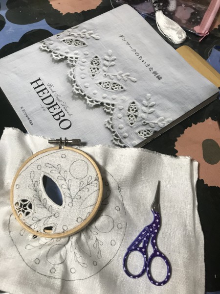 中の部分を刺し終えて周りのはしごかがりとリックラックにこれからはいりまふ