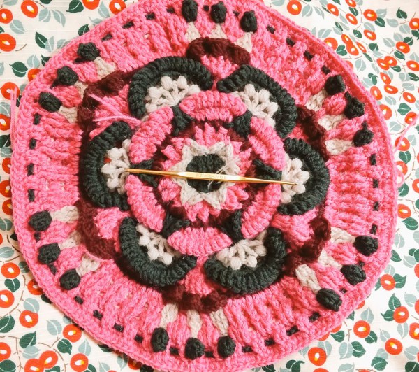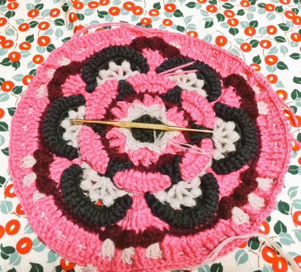 | Octagonical(https://crystalsandcrochet.com/product-category/crochet-a-long/octagonical/)編み始めました。 毛糸がなくなるか、私のやる気がなくなるか、完成するかの3択です。 |