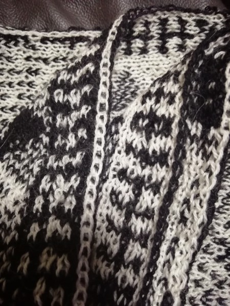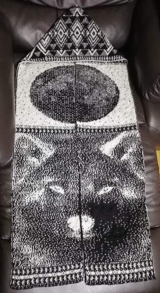 | 前作に「楽しみ!」を押してくださった皆様ごめんなさい! どうしても一目惚れして買ってしまった編み図のマフラーを編みたくて、新たに始めてしまいました。 ダブルニッティングの狼と月をモチーフにしたデザインです。 1号の針で65目×2 833段です。 糸はパピーニュー3PLYです。 出来上がりは2メートルくらいになるようです。 |