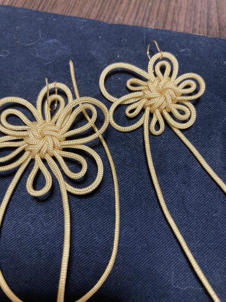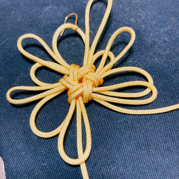| 縁起の良い 中国結の技法の中でも おめでたい結び 「吉祥結び」でお花の形で結びます |