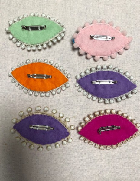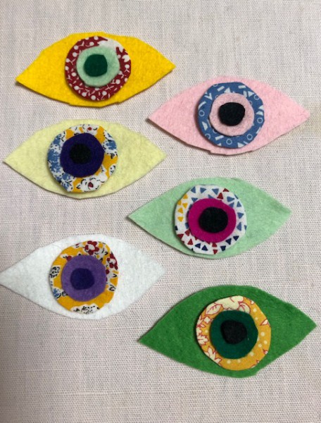 瞳と地色は、だいたい6個ずつ一緒に作ります。前に公開した4つにプラス2つができて、6個の目玉ブローチが完成しました。