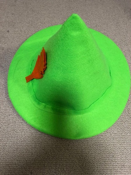 4歳の男の子にスナフキンみたいな帽子を作ってと頼まれて作りました。100均のハロウィンの子供用の帽子を軸に100均のフェルトで作ったので、黄緑色が派手です。材料費は400円くらい。そのうち、もう少し本格的なのを作ってあげたいと思っています。