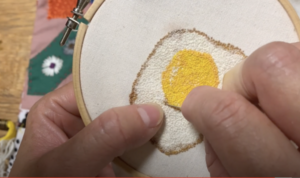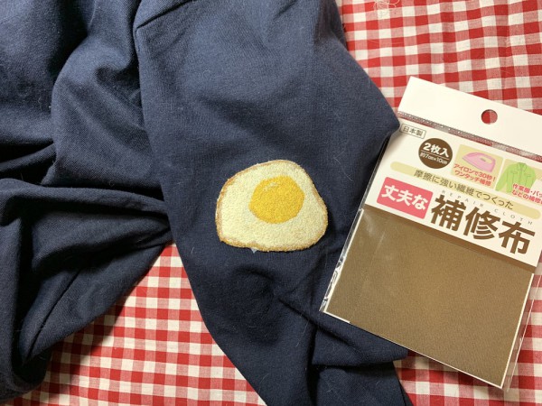 | 目玉焼きの焦げた感じと黄身のツヤや盛り上がった感じを出したかったのですがどうでしょう? 白身の部分も、ただの白色一色ではなく、何色かを混ぜてリアル感を出してみました。 全部フレンチノットステッチです。 ワッペン作りには「アイロン接着シート」という物があると良いと知りましたが手元にはなく、買いに行く時間もなく(。・_・) 立ち寄った100円ショップで、何か代替品がないかと考えたところ これならもしかして?と思ったのが補修用の布でした。 片面にだけ接着面があるので、接着面が無い側はボンドでつければ何とかワッペンになるのではないかと思い作ってみました。 |