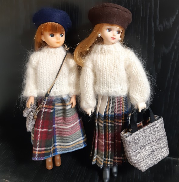 モヘア1玉を使ってドールチャームとリカちゃんのふわふわセーター編みました。