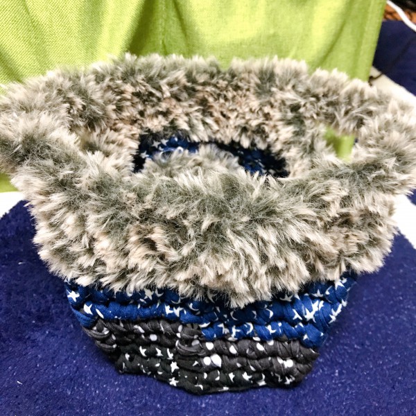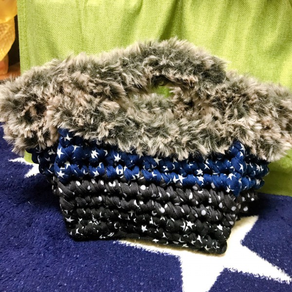 100均のTシャツヤーン3玉とSNSで触り心地が良い猫(概念)と話題になった毛玉2玉を使って作成。