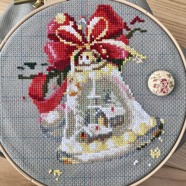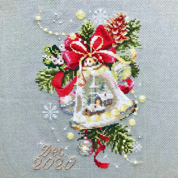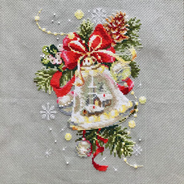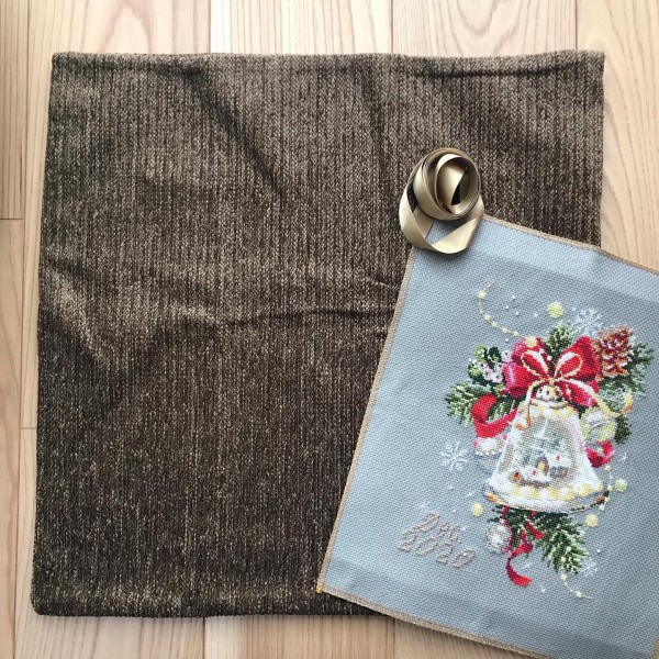 | クリスマスベルのデザインです。 クッションカバーに仕立てました。 |