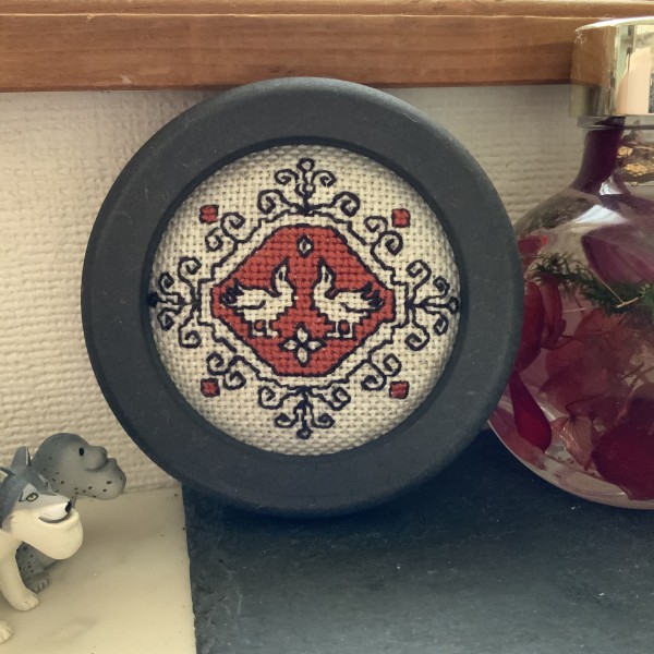 アッシジ刺繍甘くない図案と鳥のモチーフが多いところが大好きなんです⌒(ё)⌒