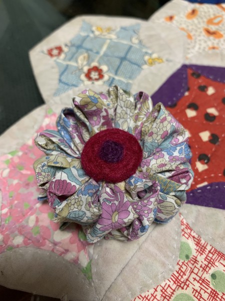 ホビーラホビーレのフラワーリリアンボビンでコサージュを作りました。