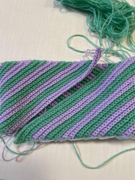 斜め縞模様にしたくて、仕上げまで決めないまま見切り発車中。