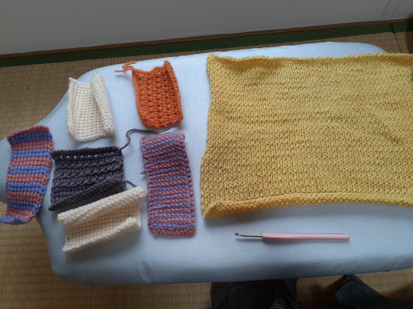 とりあえず、今まで編んだものを集めて、アイロンがけやら、糸をしまったりしています。
